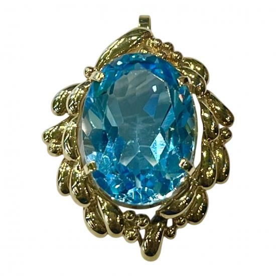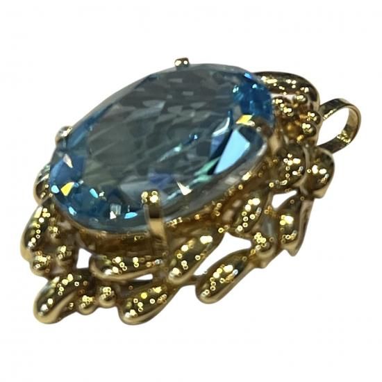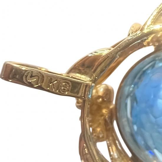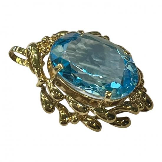 アラベスク模様のようなデザインの18Kに大ぶりのトパーズが組み込まれたペンダントトップです。縦3cmほどで、視線を集める存在感がございます。トパーズのカットと透明度がとても綺麗なペンダントです。
